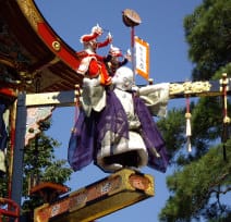 一般に「高山祭」といわれているのは4月14~15日に斎行される日枝神社の例大祭と、10月9~10日に斎行される桜山八幡宮の例大祭の総称です。両例大祭は「春の山王祭」「秋の八幡祭」として江戸時代から飛騨の人々の心を支えてきた行事でしたが、昭和27年に国の「重要無形民俗文化財」の指定を受けて以来、屋台(重要有形民族文化財)の美しさやからくり人形の技と共に、「高山祭」として全国に定着していきました。