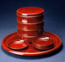 約400年前、名工、高橋喜左衛門がサワラの木目の美しさに心を打たれ風雅な蛤型の盆を仕上げて高山城主金森家に献上。これを塗師、成田三右衛門が木地を生かした透漆の重ねにて塗り上げたところ、茶道の名陶“飛春慶”に似たその琥珀色の繊細な色調から、金森家によって「春慶」と名付けられたのが始まりと伝えられています。ヒノキ、サワラなど地元の良質な素材だけが持つ素朴な美しさを生かす、飛騨の木匠と塗師の技法の集大成といえる漆器です。盆・重箱・茶道具など、用途も多岐に渡っています。【経済産業大臣指定 伝統的工芸品】218品目の1品。