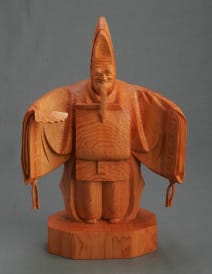 19世紀初め、名彫刻師・松田亮長が、飛騨の象徴である銘木イチイ材を使い、ノミだけで刃跡を鋭く残し彫り上げる独特の手法で根付を製作したのが「一位一刀彫」の始まりとされています。良材選びから、木取り、荒彫りなど6つの工程を経て仕上げられる作品は、あえて彩色を施さず、艶やかなイチイの木目や、赤太(心材)・白太(辺材)と呼ばれる木肌の色合いを活かしており、年月と共にその艶が増して美しい飴色に変化することで知られています。置き物・茶道具・面などが作られ、高山祭の屋台の彫刻にもその技が活かされています。【経済産業大臣指定 伝統的工芸品】218品目の1品。