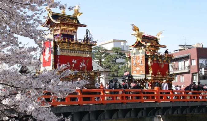 一般に「高山祭」といわれているのは4月14~15日に斎行される日枝神社の例大祭と、10月9~10日に斎行される桜山八幡宮の例大祭の総称です。両例大祭は「春の山王祭」「秋の八幡祭」として江戸時代から飛騨の人々の心を支えてきた行事でしたが、昭和27年に国の「重要無形民俗文化財」の指定を受けて以来、屋台(重要有形民族文化財)の美しさやからくり人形の技と共に、「高山祭」として全国に定着していきました。
