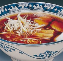 高山ラーメンは鶏ガラに鰹節や野菜を加えた「和風しょうゆ味」+「平打ちの細い縮れ麺」が基本形。スープを、どんぶりの上にタレを用意し出汁で溶く一般的な作り方でなく、出汁とタレを一緒に混ぜて寸胴で煮込むのが特徴です。具もネギ・チャーシュー・メンマなどいたってシンプル。昔懐かしい素朴でさっぱりとしたその味は、地元の人のソウルフードといえる一品です。地元では、店頭の暖簾に見られるように「高山ラーメン」でなく、「中華そば」と呼ぶ方が一般的かもしれません。